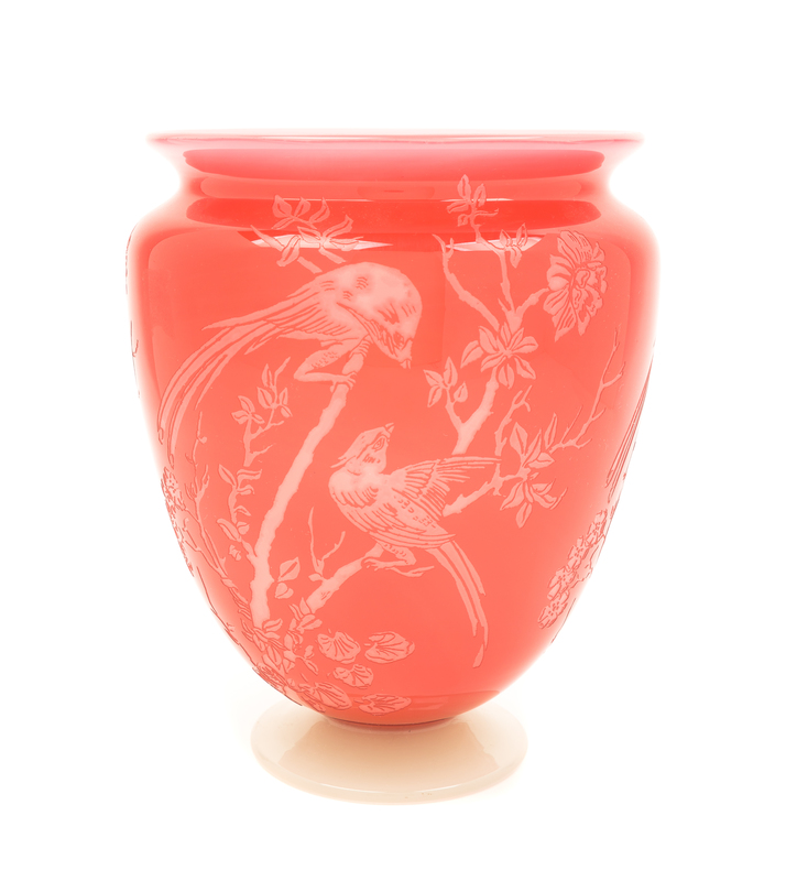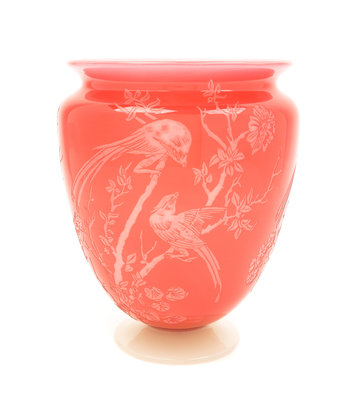 a cameo glass vase, with bird motif