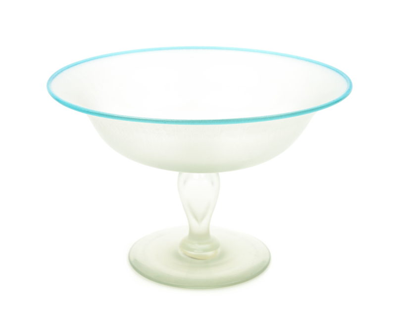 a Verre de Soie compote with blue lip wrap