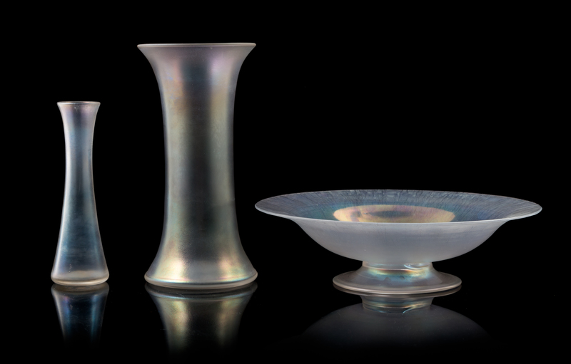 three Verre de Soie glass articles