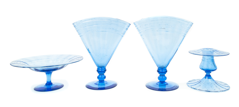 a group of four celeste blue glass table articles