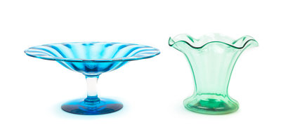 two glass articles, comprising a compote and vase