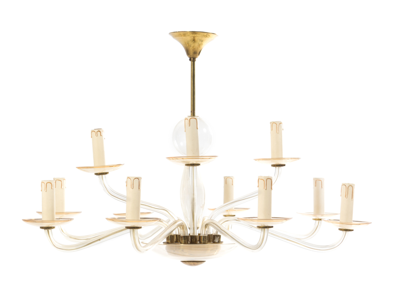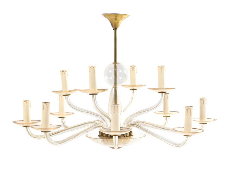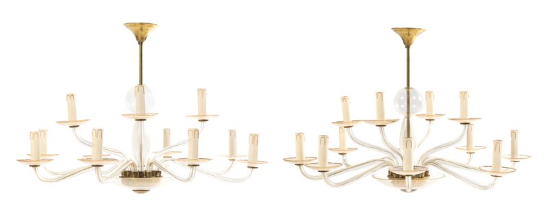 a pair of glass chandeliers
