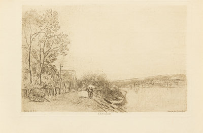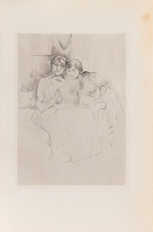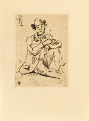a group of 4 etchings consisting of Paysage, 1899 by Alfred Sisley (French, 1839-1899); Le lecon de desin, c. 1890 by Bethe Morisot (French, 1841-1895); Guillaumin au Pendu, 1873 by Paul Cezanne (French, 18391906); and W.H.B. Sands, diteur, 1898 by Henri de Toulouse-Lautrec (French, 18641901)
