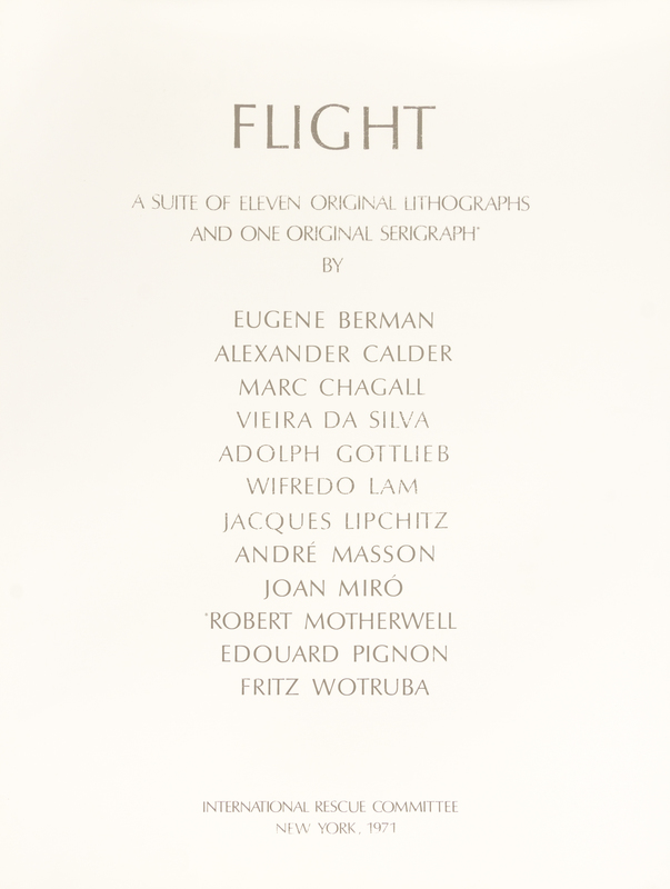 Flight, 1971 (the complete set of eleven lithographs and one screenprint in colors (each signed excluding the Marc Chagall), on various wove papers, loose (as issued), with title page, text, table of contents and justification page and original blue cloth covered portfolio box