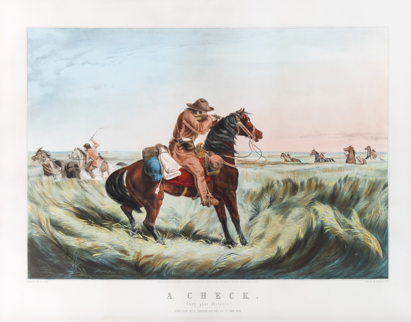 a large folio hand colored lithograph A Check. "Keep Your Distance!" published by N. Currier, New York, 1856