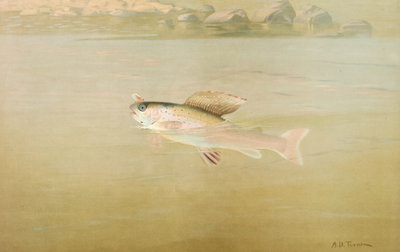 chromolithograph "The Montana Grayling" printed by Sackets & Wilhelms Litho & Ptg Co. New York, Copyright 1902 by F.M. Johnson