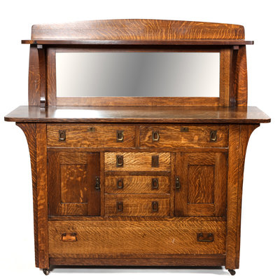 American Arts & Crafts Oak Mirror Backed Sideboard by Charles Limbert