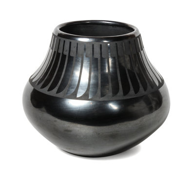 Maria Martinez and Popovi Da (1887-1980, 1922-1971) Blackware Feather Jar