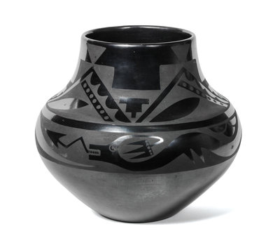 Maria Martinez and Popovi Da (1887-1980, 1922-1971) San Ildefonso Blackware Jar