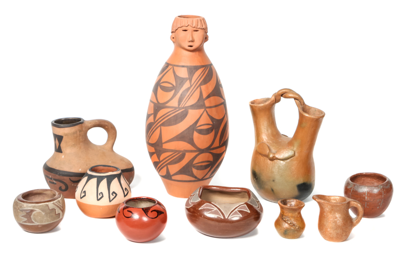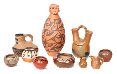 of varying sizes and styles, including agural vessel, and an Owens Pottery, Aborigine Line vessel (10 total)