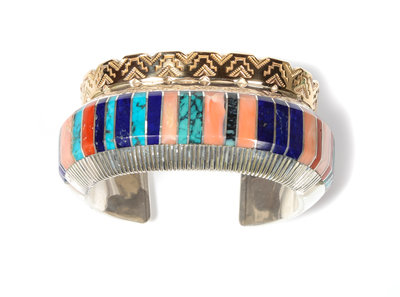 Navajo 14 Karat Gold, Silver and Multi-Stone Bracelet, Gibson Nez