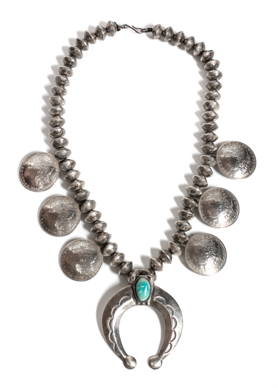 Southwestern Silver, Liberty Coin and Turquoise Squash Blossom