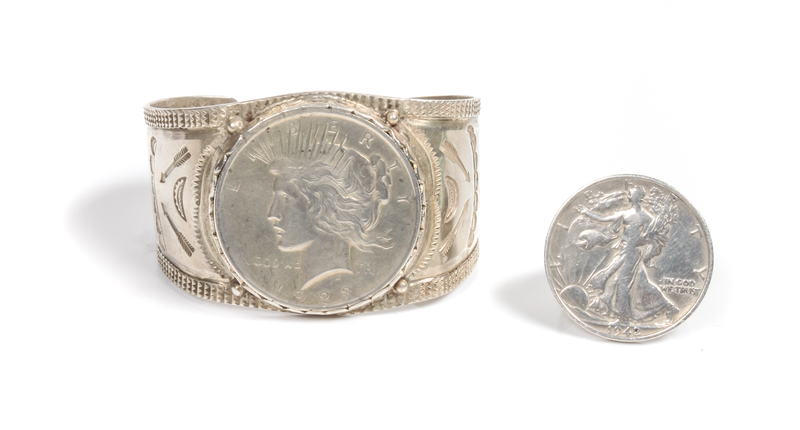 Southwestern Silver and 1928 Liberty Dollar Cuff Bracelet