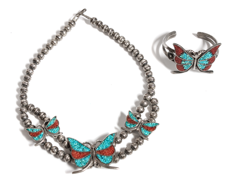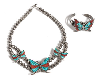 Navajo Chip Inlay Butterfly Necklace and Bracelet