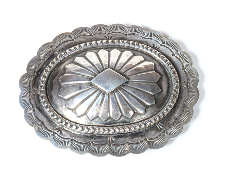 Zuni Stamped Silver Belt Buckle, Sam Piaso