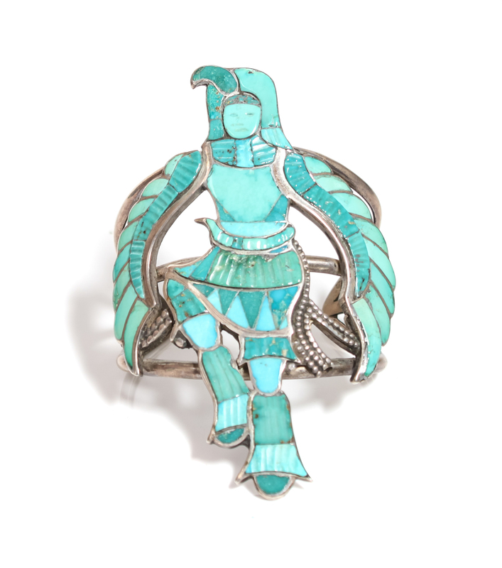 Zuni Chanel Inlay Figural Bracelet, Eddie Beyuka (1920-2002)