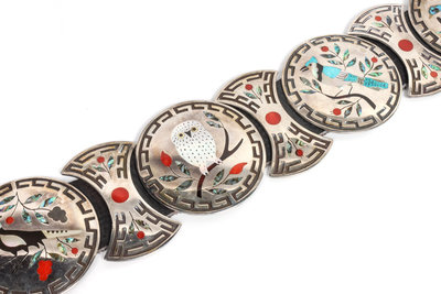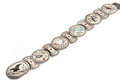 Zuni Silver Inlaid Concho Belt, Dennis and Nancy Edaakie (b.1931, b.1937)