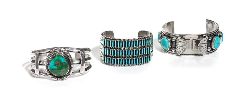 together with a Navajo silver and turquoise bracelet and a watch bracelet