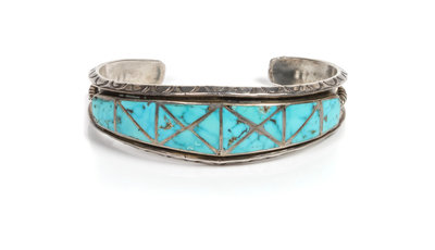 Zuni Silver and Turquoise Flush Inlay Bracelet