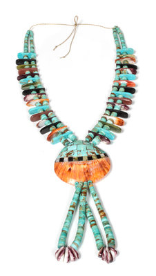 with turquoise, coral, shell, onyx and mother of pearl