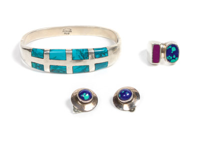 together with a Southwest style ring and pair of ear clips
