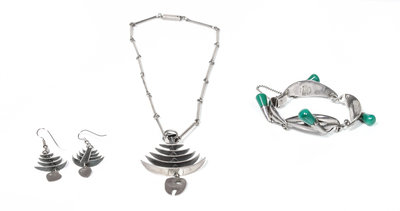 Mexican Silver Necklace and Earring Demi Parure