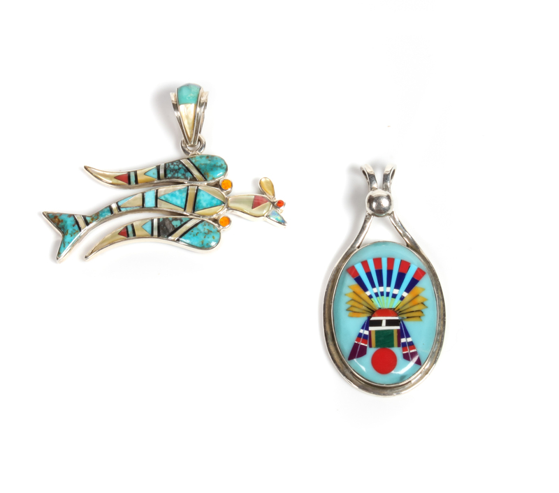 Two Southwestern Silver and Multi-Stone Inlay Pendants