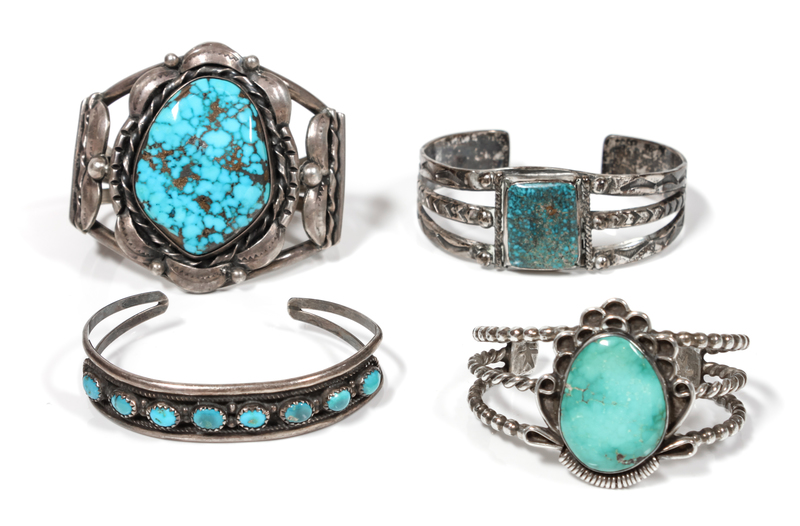 Four Southwestern Silver and Turquoise Bracelets
