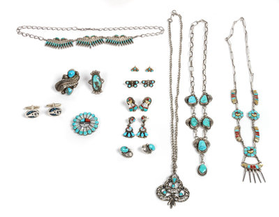 including four necklaces, two rings, five pairs of earrings, a pair of cuff links and a brooch (13 total)