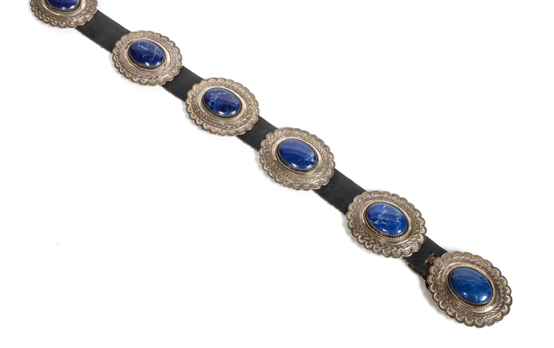 A Southwestern Silver and Blue Hard Stone Concho Belt