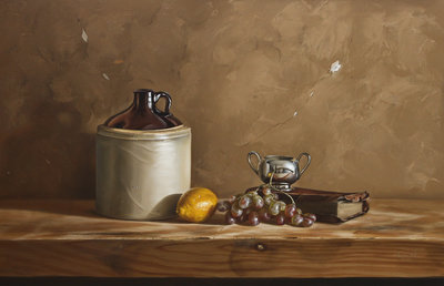 Still Life with Grapes, Lemon, Jug and Book