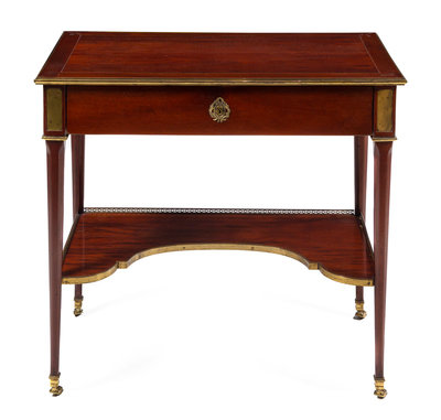 A Louis XVI Style Gilt Bronze Mounted Mahogany Writing Table