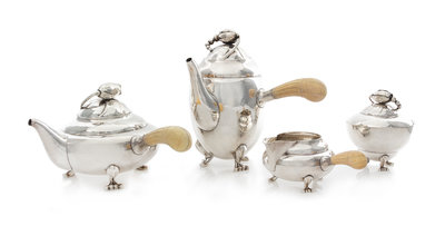 Blossom pattern, comprising a coffee pot, teapot, creamer and covered sugar.