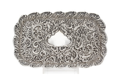 of rectangular form with allover rococo decoration, centered by a vacant cartouche.