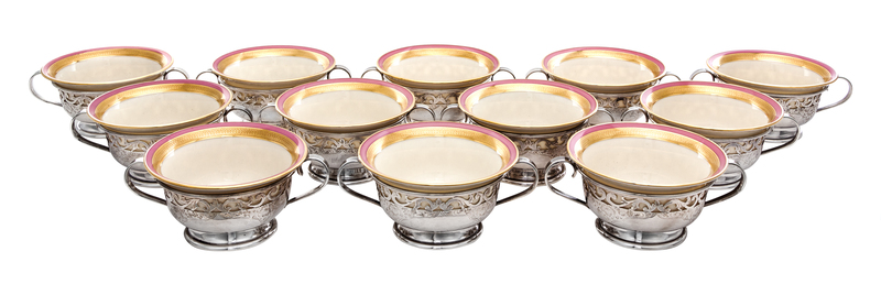 A Set of Twelve American Silver-Lined Porcelain Sherbet Bowls
