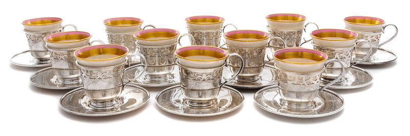 A Set of Twelve American Silver-Lined Porcelain Coffee Cups