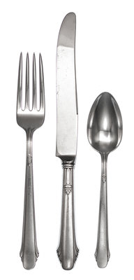 Hunt Club pattern, comprising:12 dinner knives11 dinner forks10 salad forks5 cocktail forks11 teaspoons6 soup spoons10 coffee spoons14 butter spreaders2 serving spoons1 master butter knife1 serving fork1 sauce ladle1 cream ladle1 sugar tongs1 mashed potato server 1 two-piece carving set