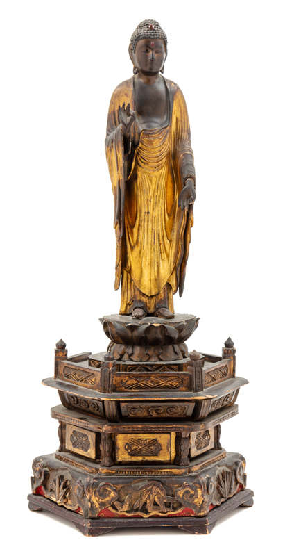 raised on a hexagonal base carved to show ruyi clouds and foliage in relief.