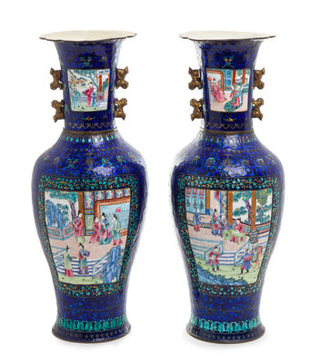 A Pair of Large Canton Export Enamel Vases