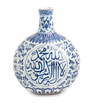 A Chinese Blue and White Porcelain Pilgrim Jar