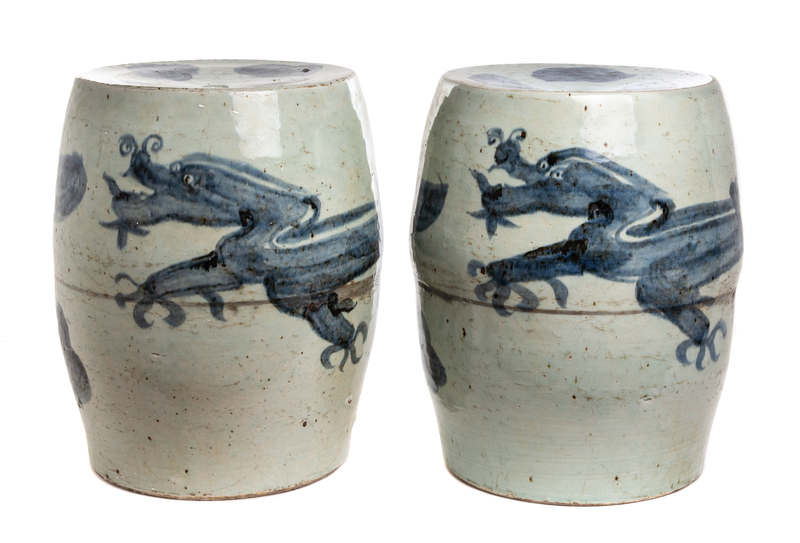 each of barrel form, decorated to show dragons.