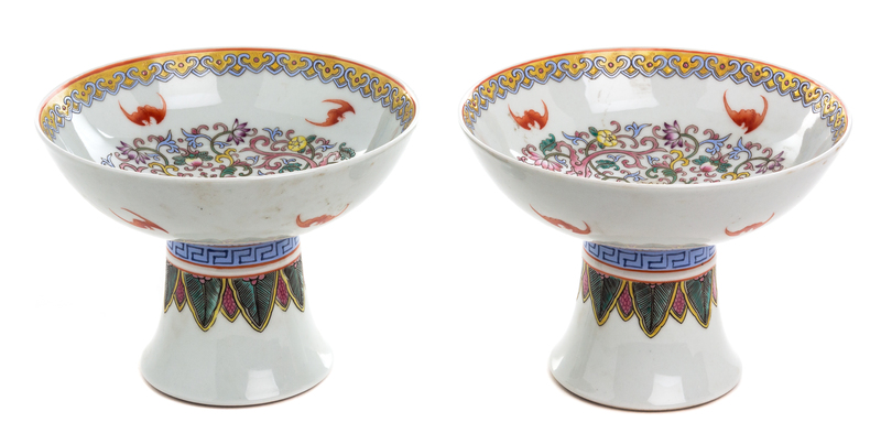 each decorated with stylized bats and foliate decoration, with a six-character mark to the underside.