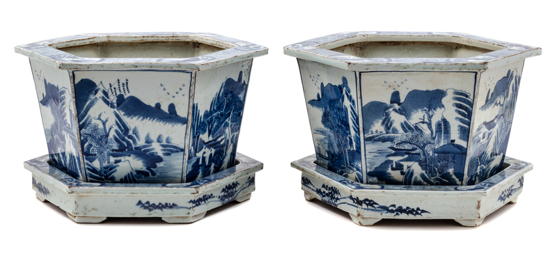 A Pair of Chinese Porcelain Jardinieres on Stands