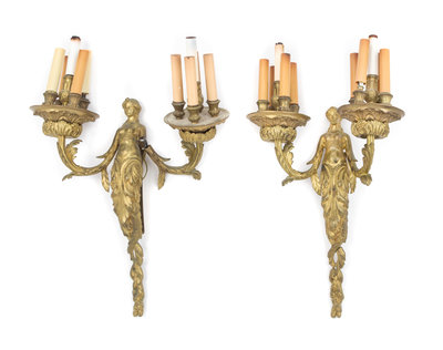 each in the form of a female torso transforming into foliate scrolls, issuing the scrolling candle arms.