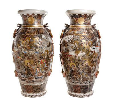 A Pair of Japanese Satsuma Porcelain Vases