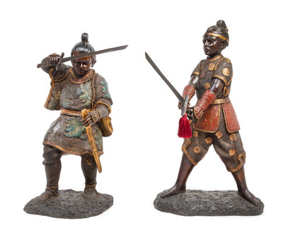 A Pair of Japanese Parcel Gilt Bronze Figures