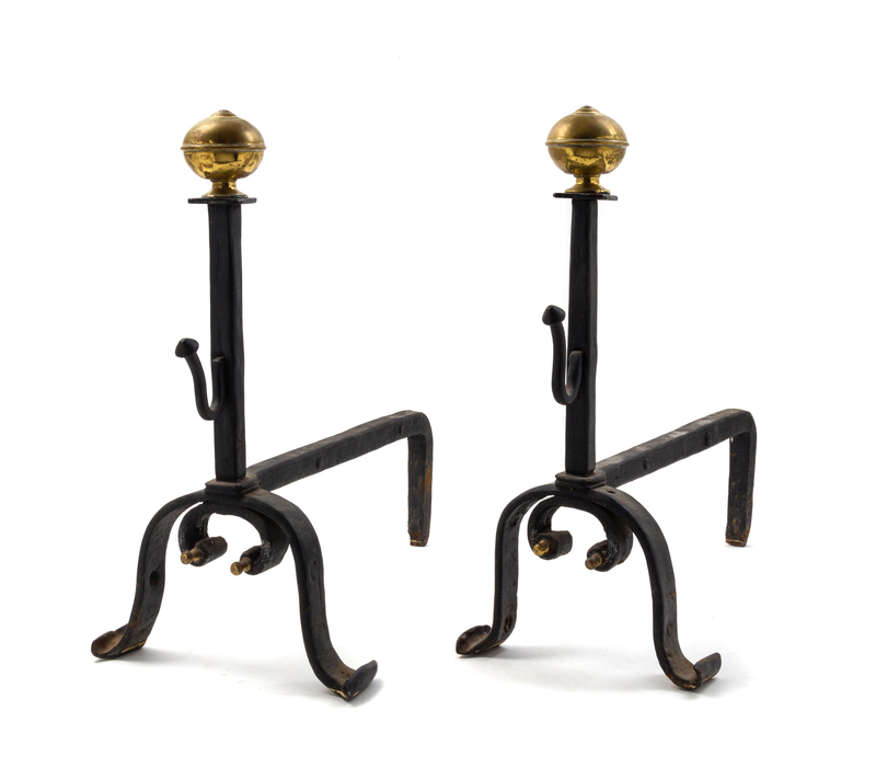 A Pair of Brass and Iron Andirons