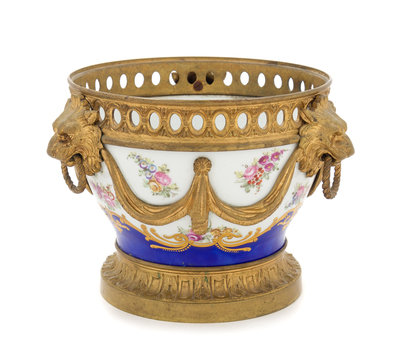 A Sevres Style Gilt Bronze Mounted Porcelain Cache Pot