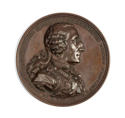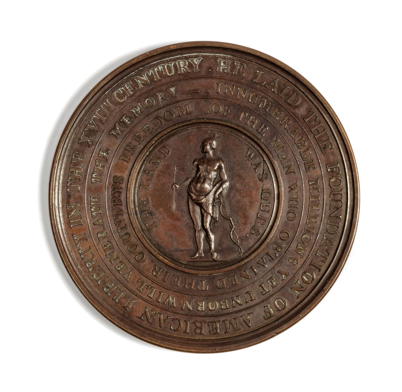 the obverse with a portrait of George Washington in profile, the reverse depicting a Native American.