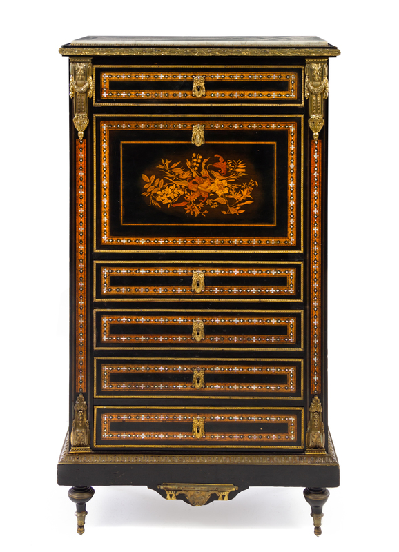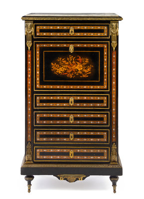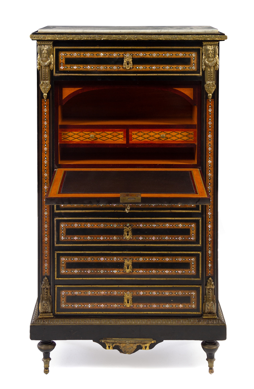 A Napoleon III Ebonized and Mother-of-Pearl Inset Secretaire a Abattant